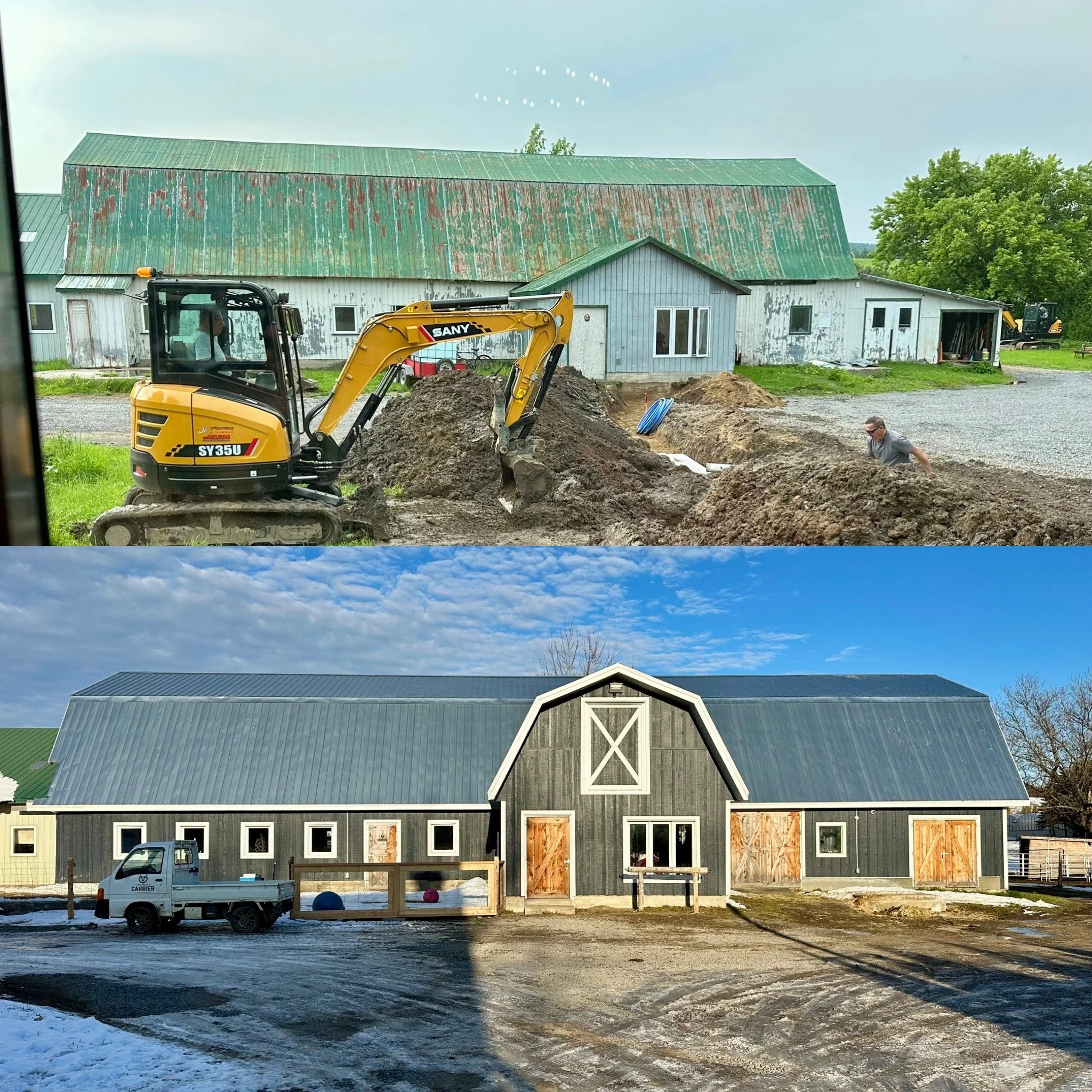 Ancienne ferme laitière, elle fut rachetée en 2021 par Fred Carrier, qui entreprit de gros travaux de rénovation sur la maison et tous les bâtiments dans le but de redonner vie à un lieu rempli d’histoire, de nature et de possibilités.